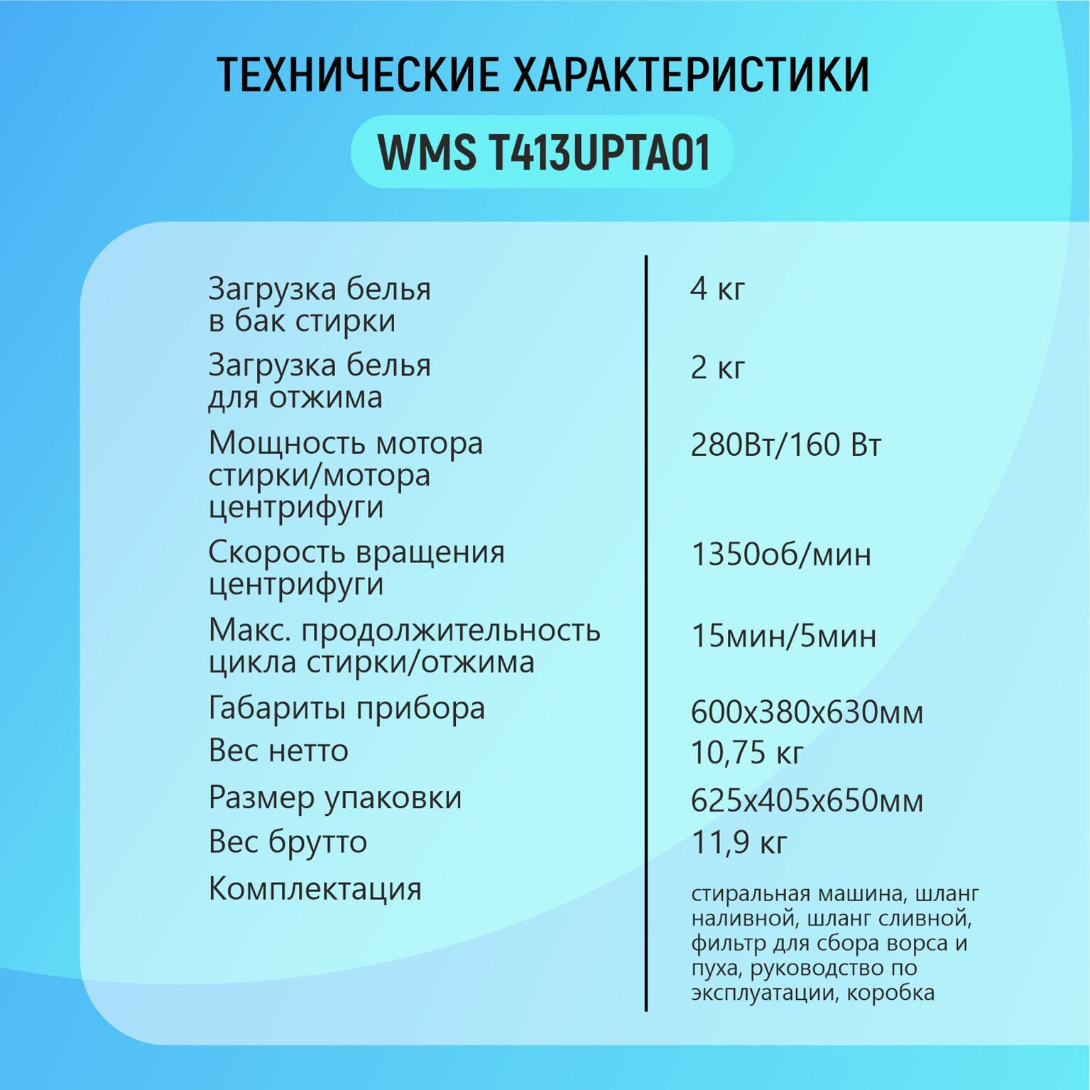 Стиральная машина полуавтоматическая мечта WMS T413UPTA01 интересное: