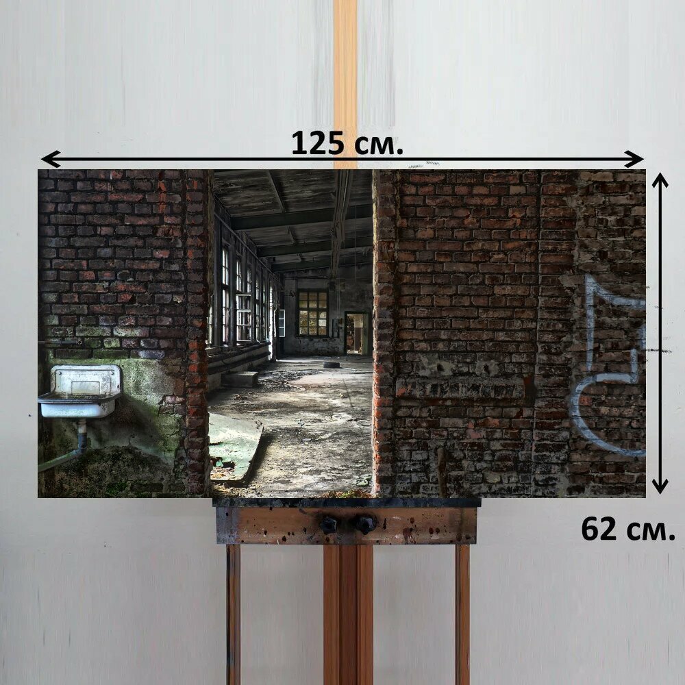 Картина на ОСП 125х62 см. "Заброшенный, кирпич, старый" горизонтальная, для интерьера, с креплениями интересное: