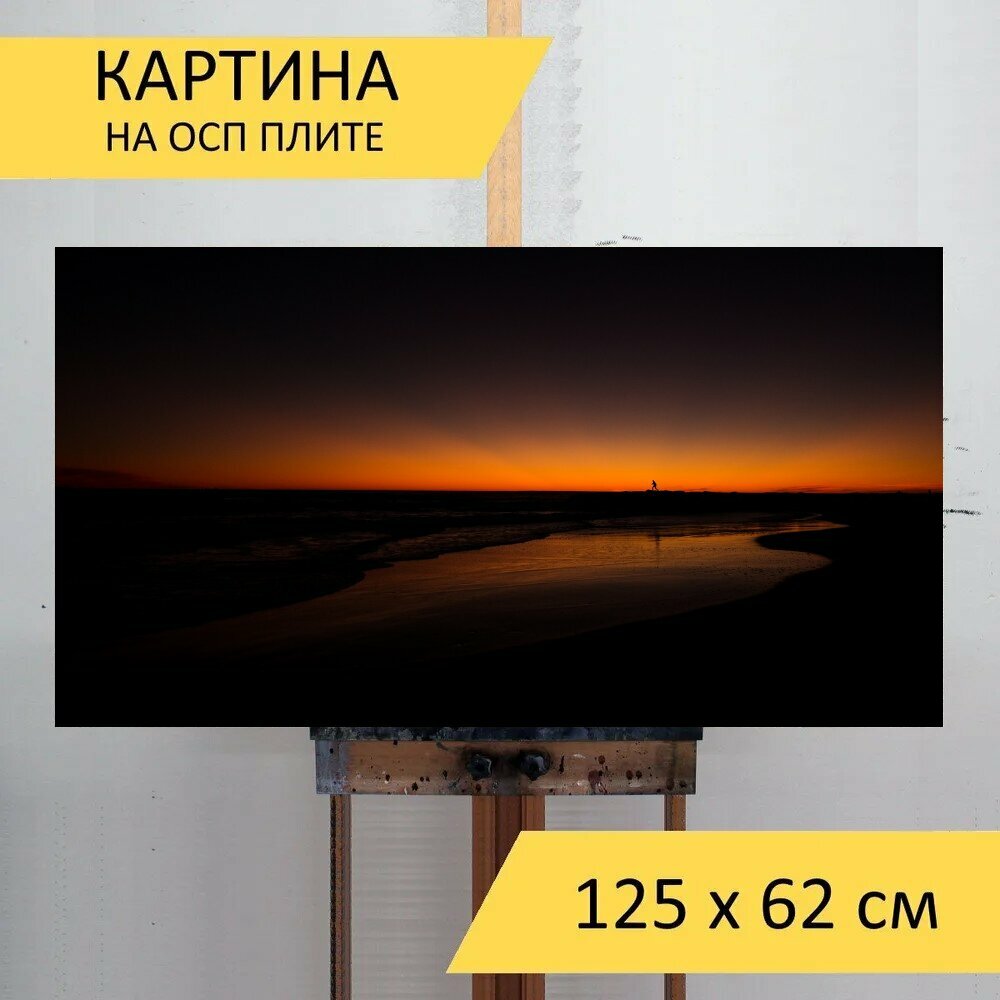 Картина на ОСП 125х62 см. "Заход солнца, пляж, океан" горизонтальная, для интерьера, с креплениями интересное: