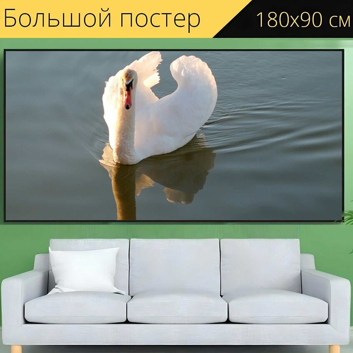 Большой постер "Лебедь, птица, перья" 180 x 90 см. для интерьера интересное: