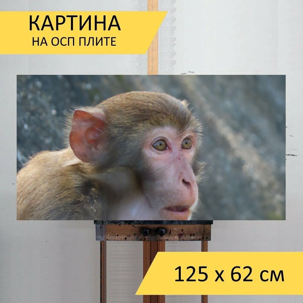 Картина на ОСП 125х62 см. "Обезьяна, животное, дикая природа" горизонтальная, для интерьера, с креплениями интересное: