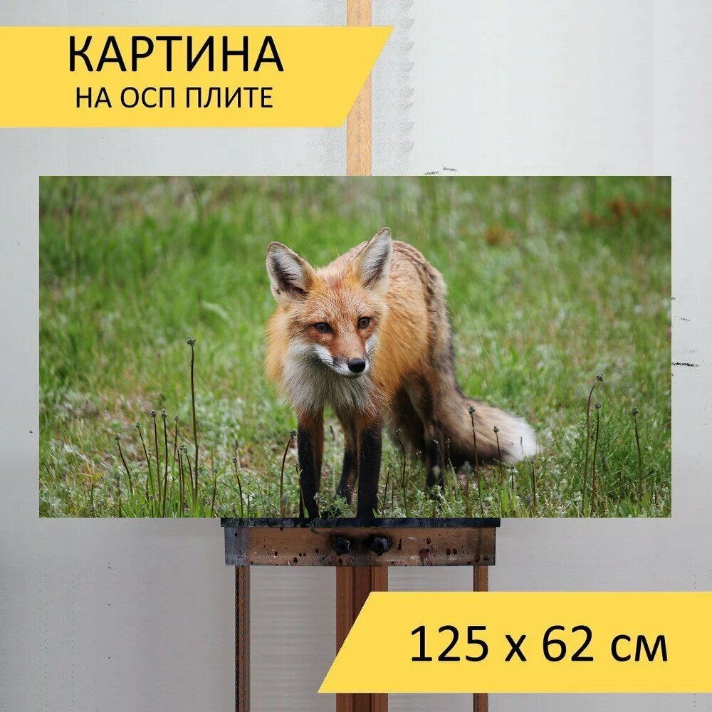 Картина на ОСП 125х62 см. "Лиса, животное, млекопитающее" горизонтальная, для интерьера, с креплениями интересное: