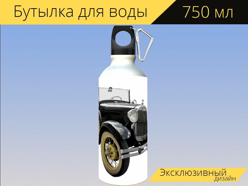 Купить Бутылка фляга для воды "Старинный автомобиль, автомобиль, движение" 750 мл. с карабином и принтом