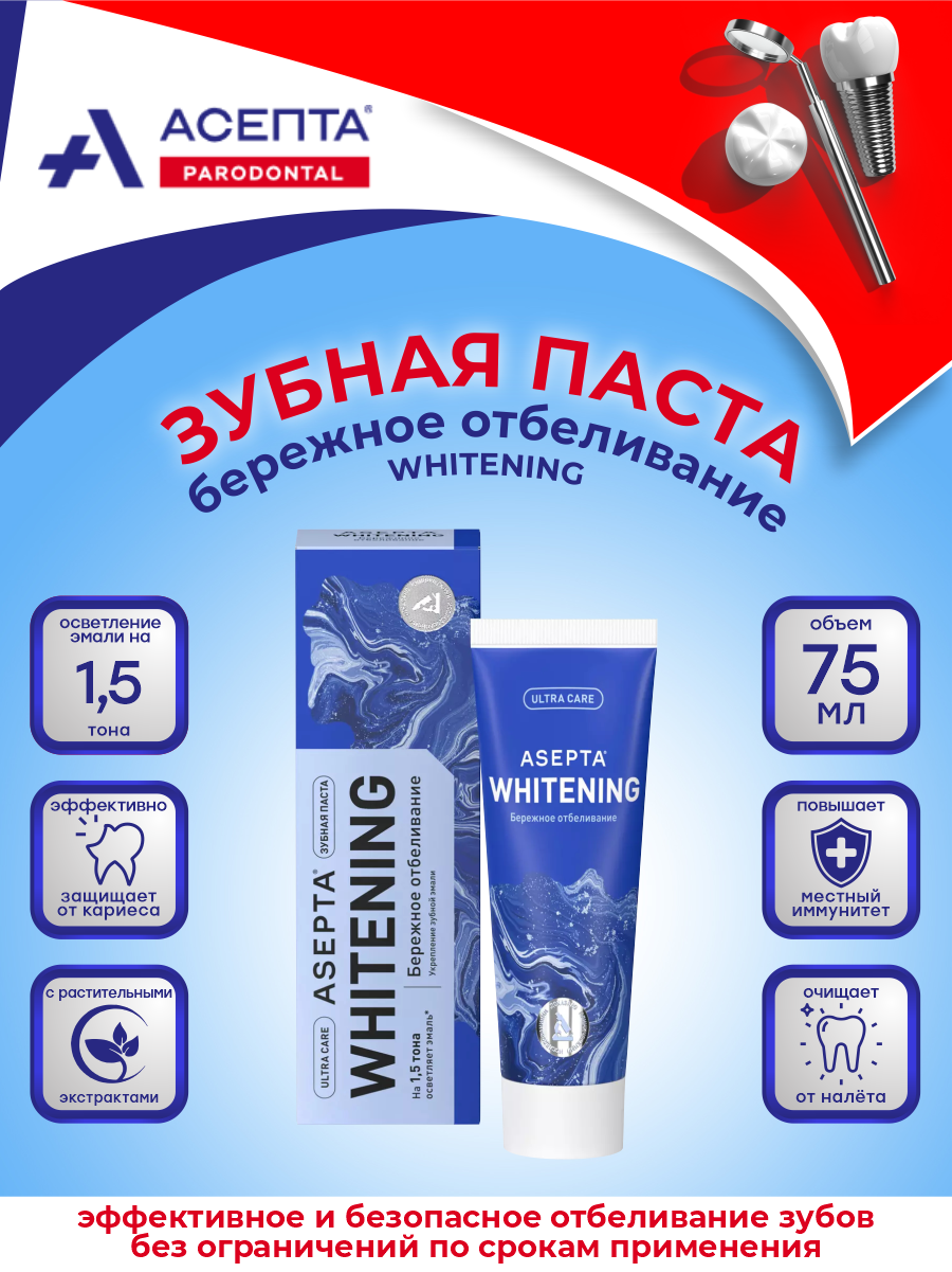 Зубная паста асепта "Бережное отбеливание", 75 мл