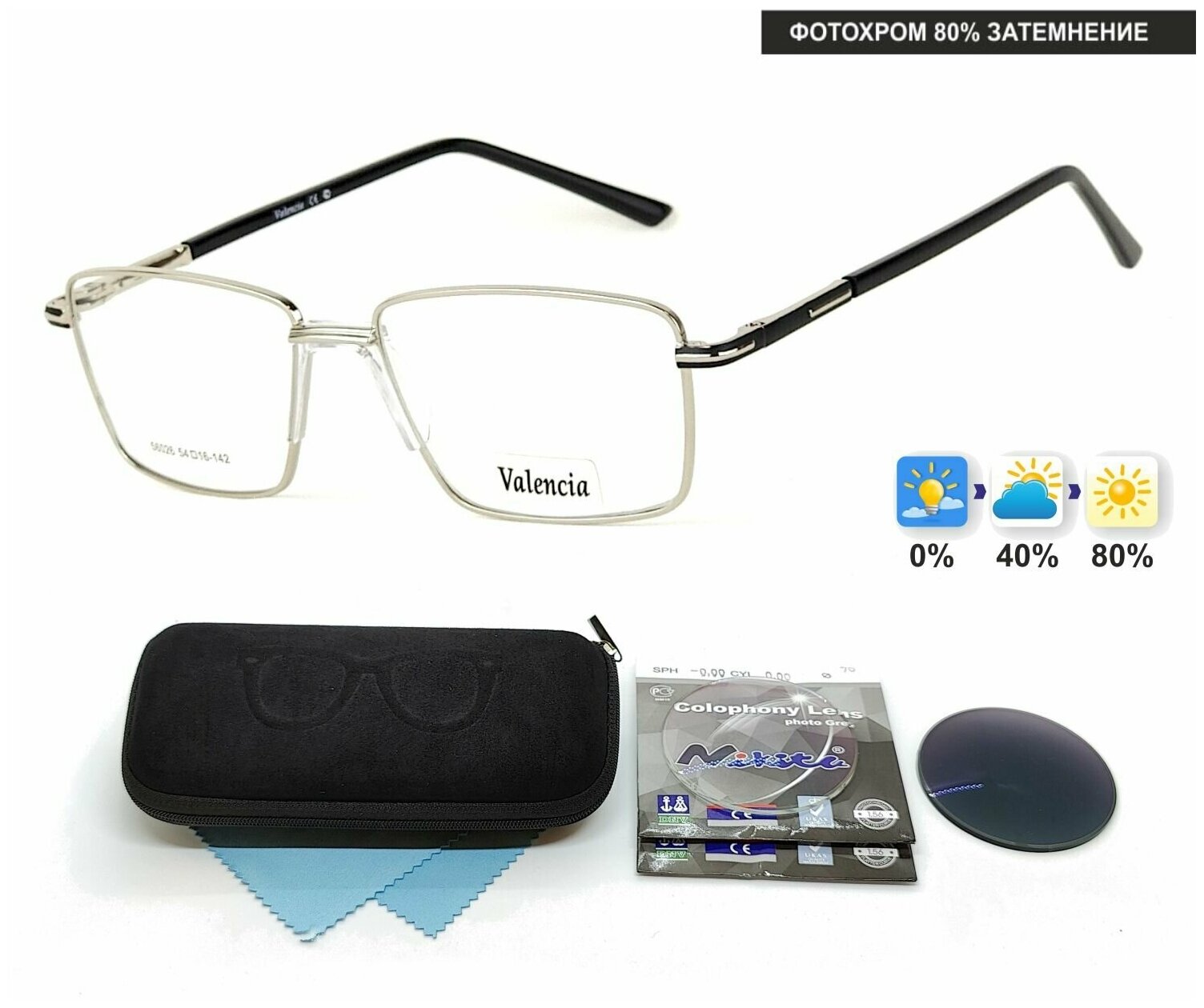Фотохромные очки с футляром-змейка VALENCIA мод. 56026 Цвет 4 с линзами NIKITA 1.56 Colophony GRAY, HMC+ -4.00 РЦ 62-64 интересное: