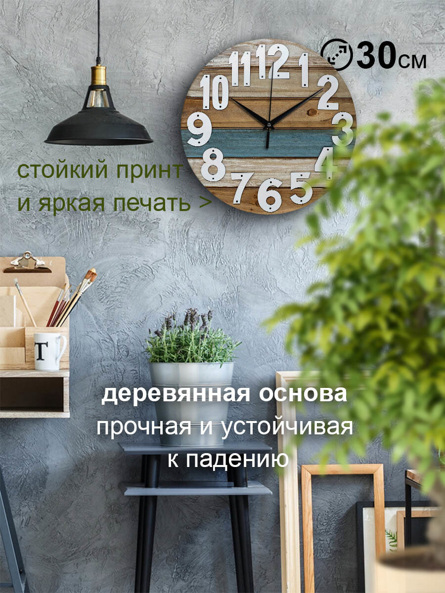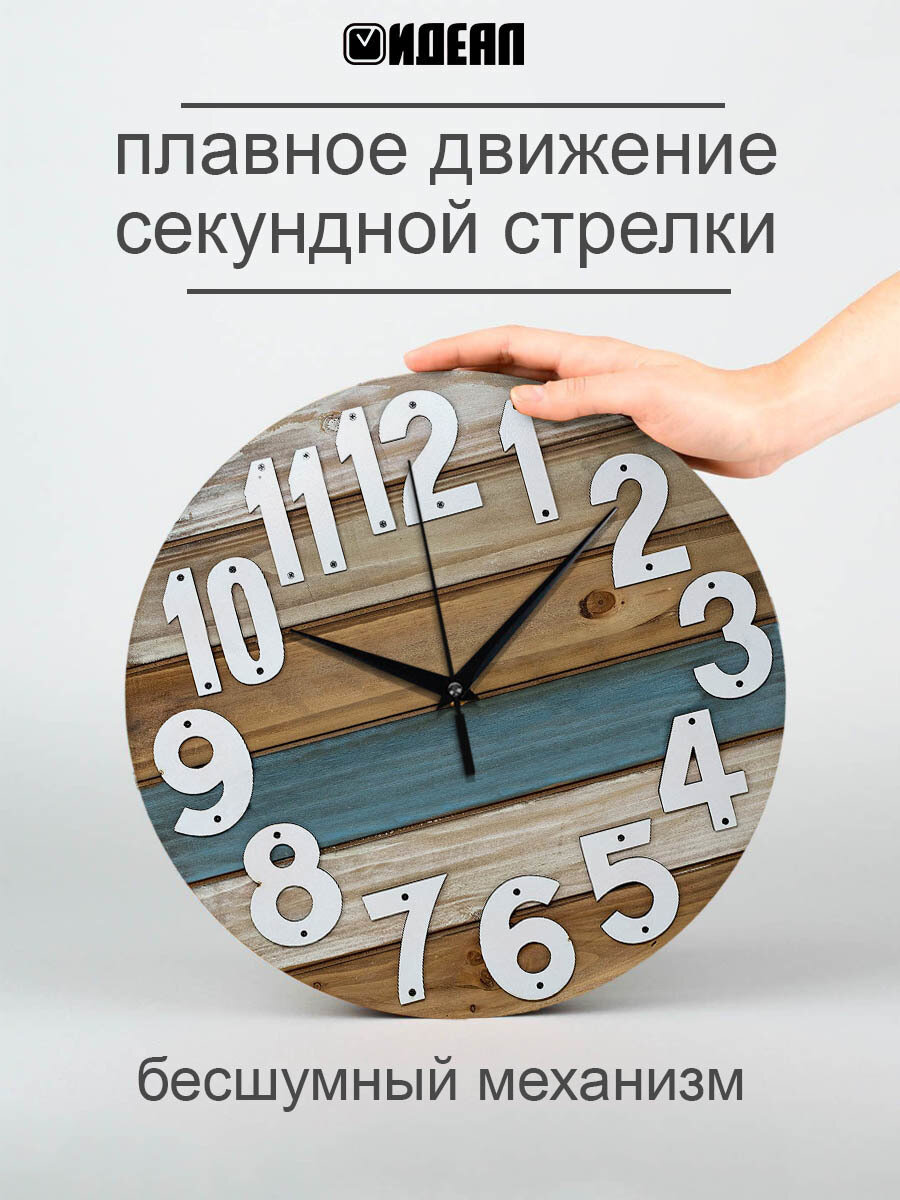 Часы настенные деревянные бесшумные на кухню на стену "Часовой завод идеал""Прибитые цифры", 30 см, часы кухонные настенные интерьерные настенные часы интересное: