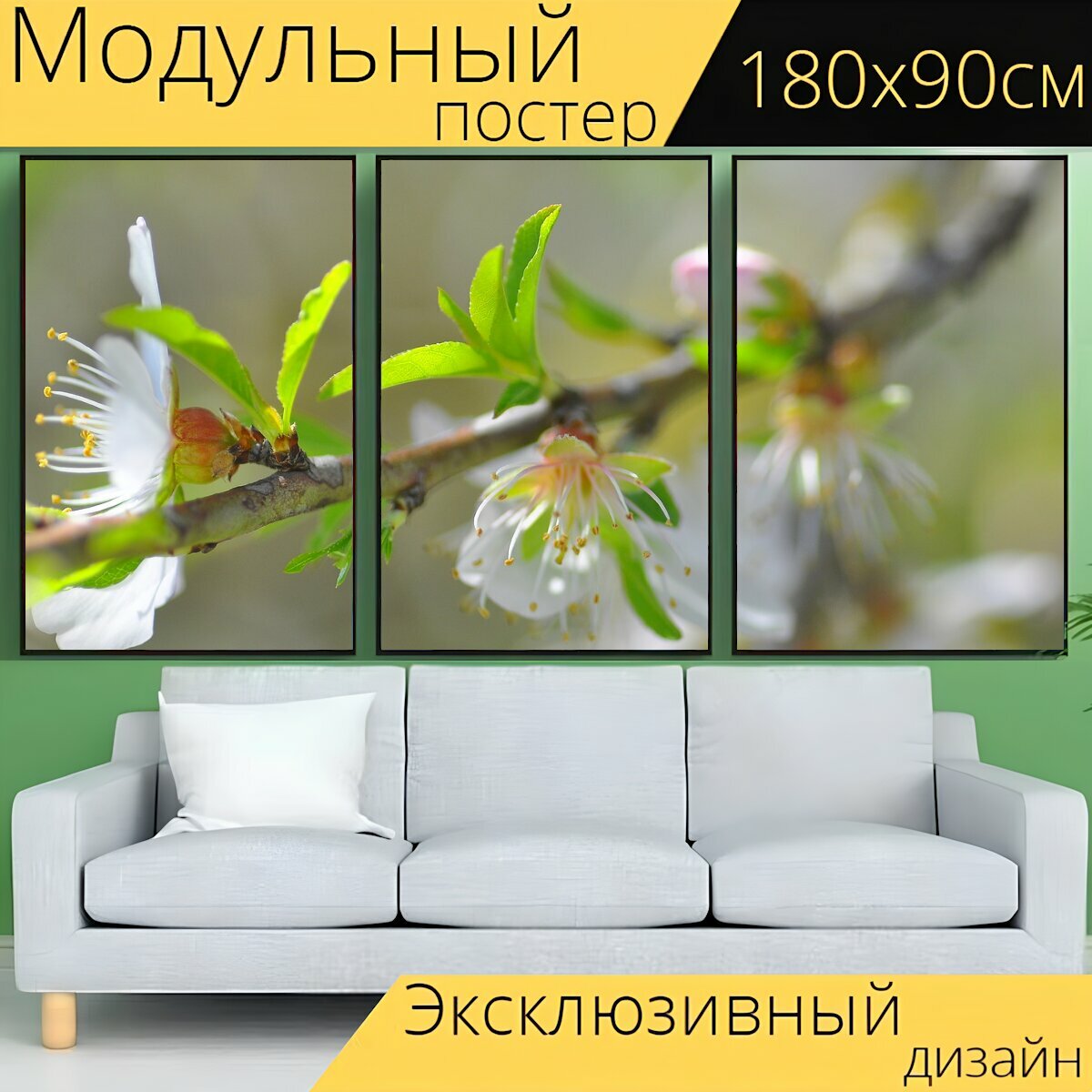 Купить Модульный постер "Миндальный цветок, миндальное дерево, природа" 180 x 90 см. для интерьера