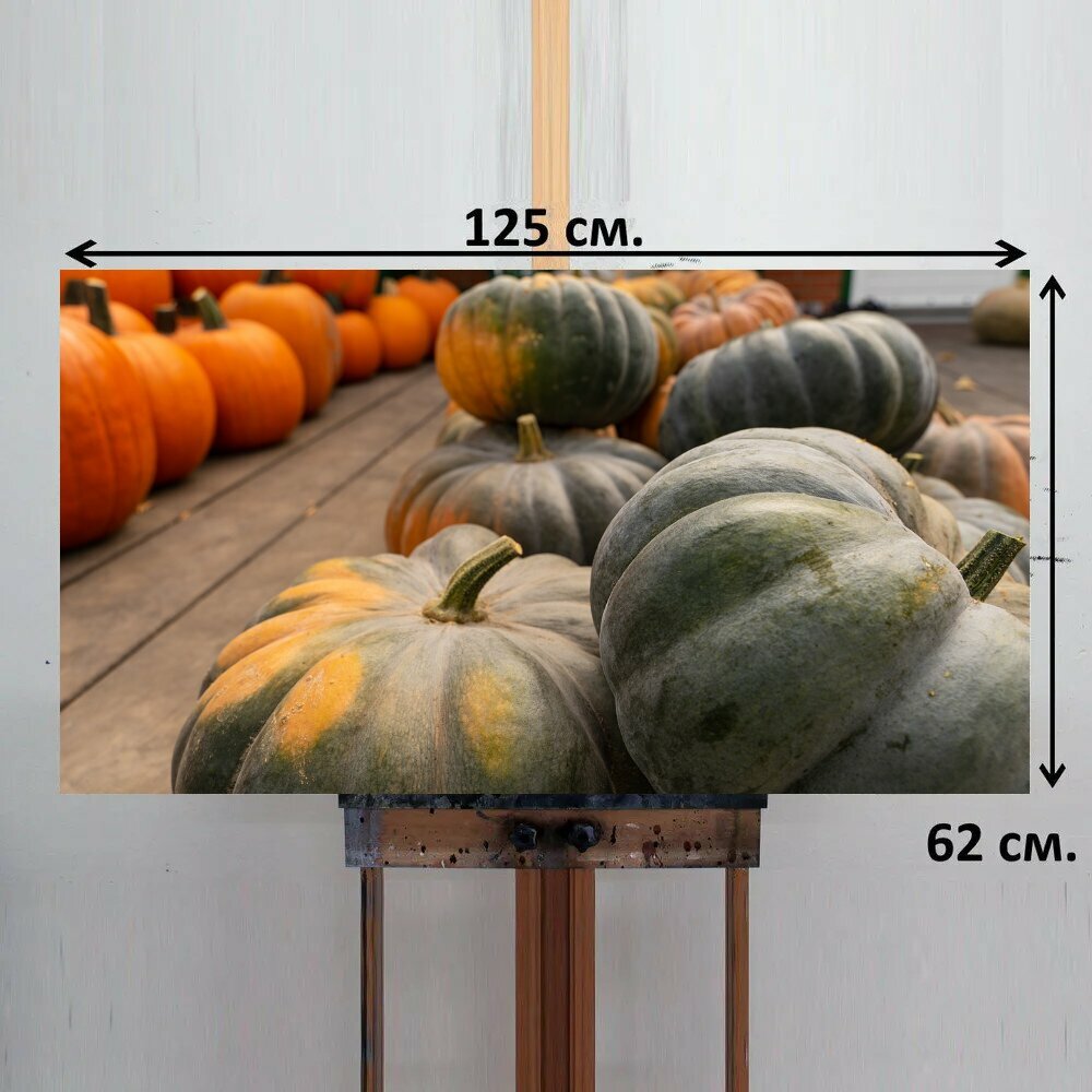 Картина на ОСП 125х62 см. "Тыква, овощи, уборка урожая" горизонтальная, для интерьера, с креплениями интересное: