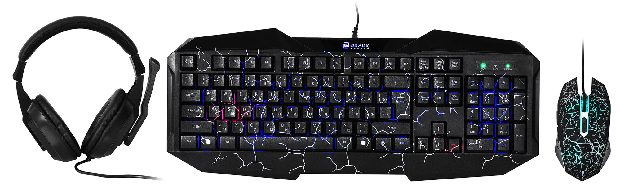Комплект клавиатура + мышь + гарнитура OKLICK HS-HKM100G Imperial, черный