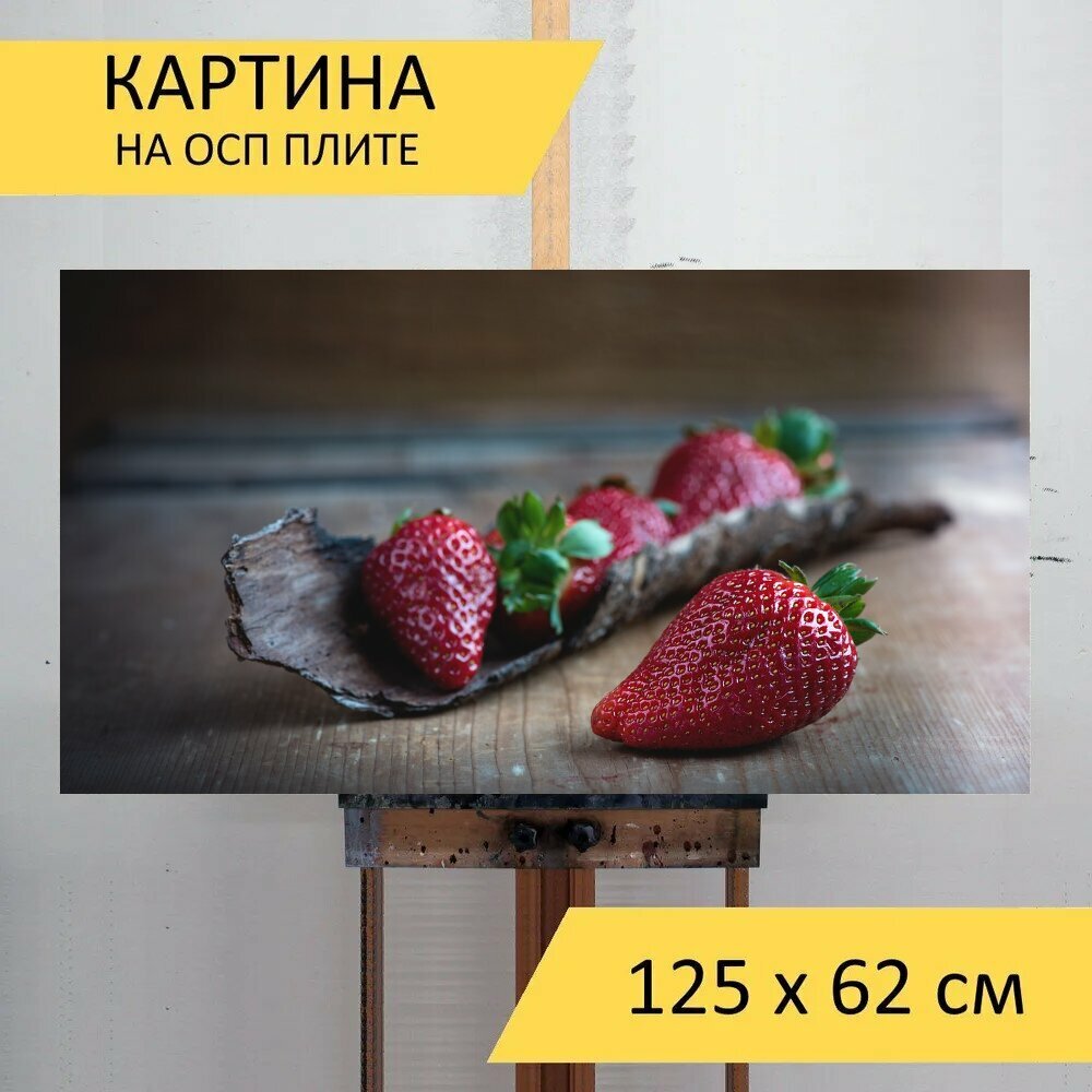 Картина на ОСП 125х62 см. "Клубника, красный, спелый" горизонтальная, для интерьера, с креплениями интересное: