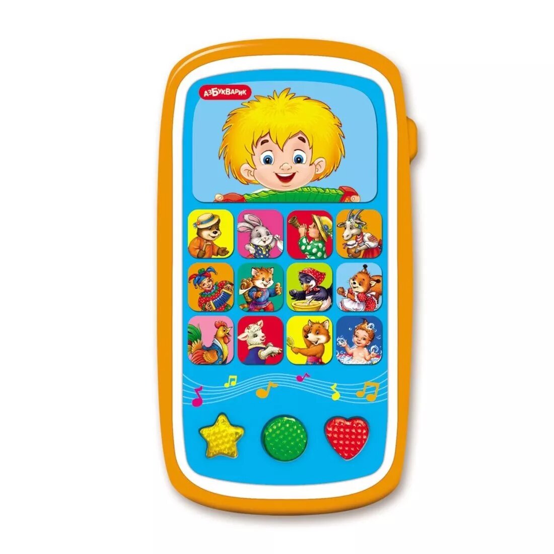 | Плюсы: | Звук не громкий, пластик прочный , похож по размеру на iphone -ребенку очень понравился! |