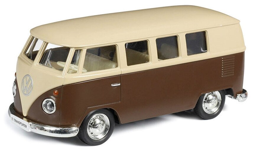 Машинка металлическая Uni-Fortune RMZ City 1:32 Автобус инерционный Volkswagen Type 2 (T1) Transporter, цвет матовый бежевый с коричневым, 16,5*7,5*7 см 554025M(I)