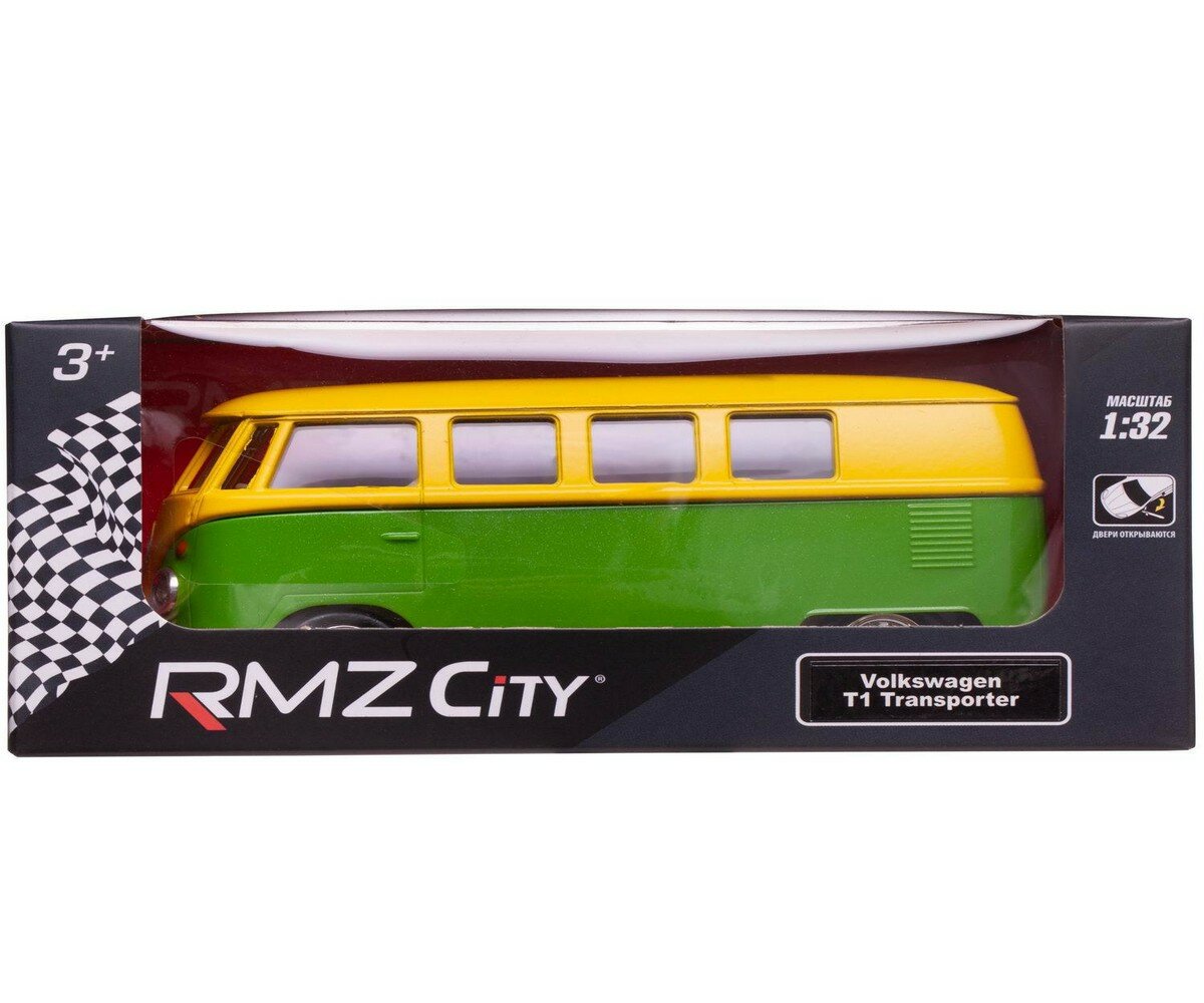 Автобус инерционный RMZ City 1:32 Volkswagen Type 2 (T1) Transporter, желтый с зеленым, металлический (554025M(J))