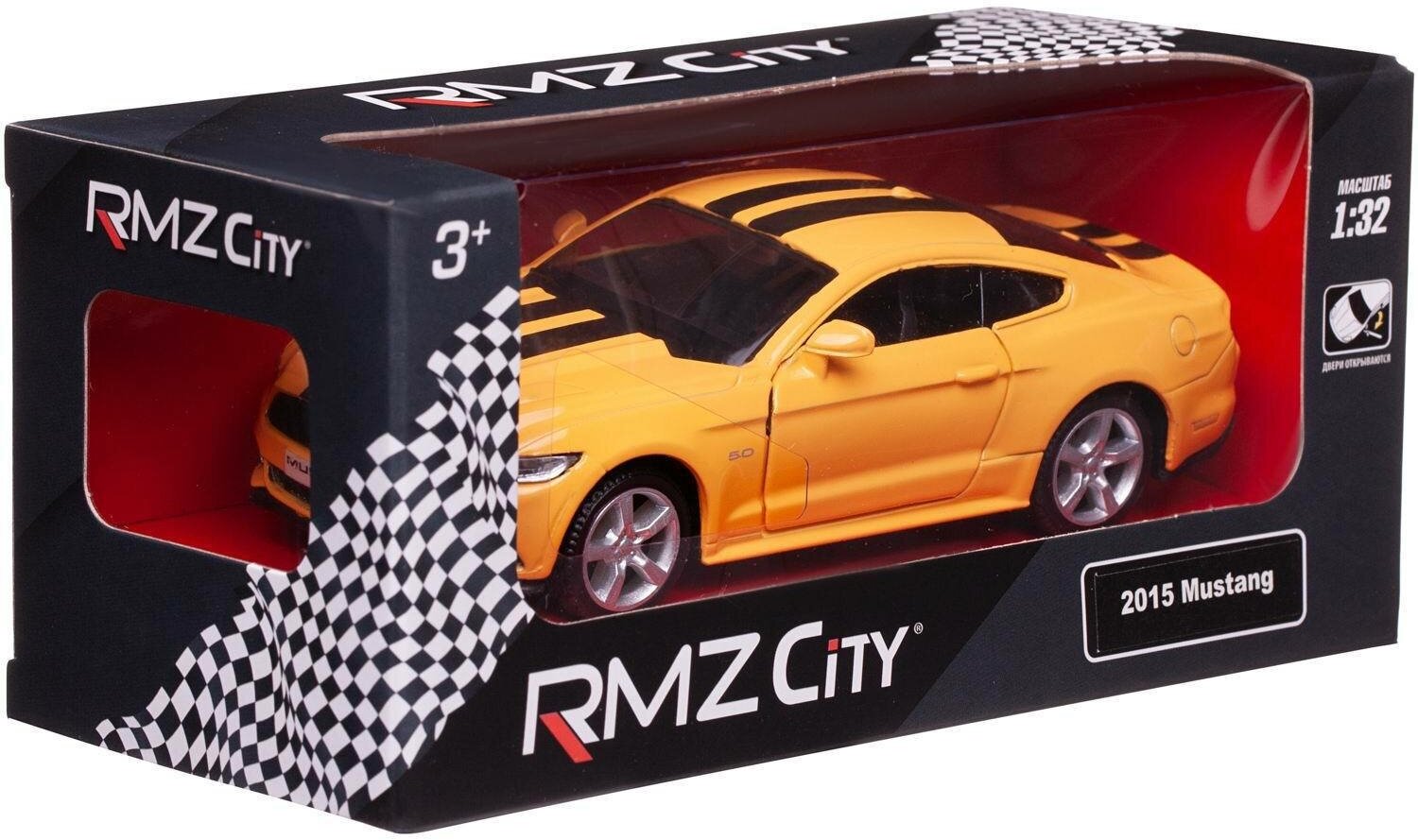 Машина металлическая RMZ City 1:32 Ford 2015 Mustang with Strip инерционная, цвет желтый, 12,7х5,08х