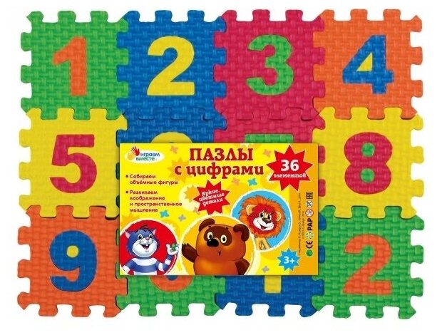 Мини коврик-пазл с цифрами (36 элементов) Играем вместе