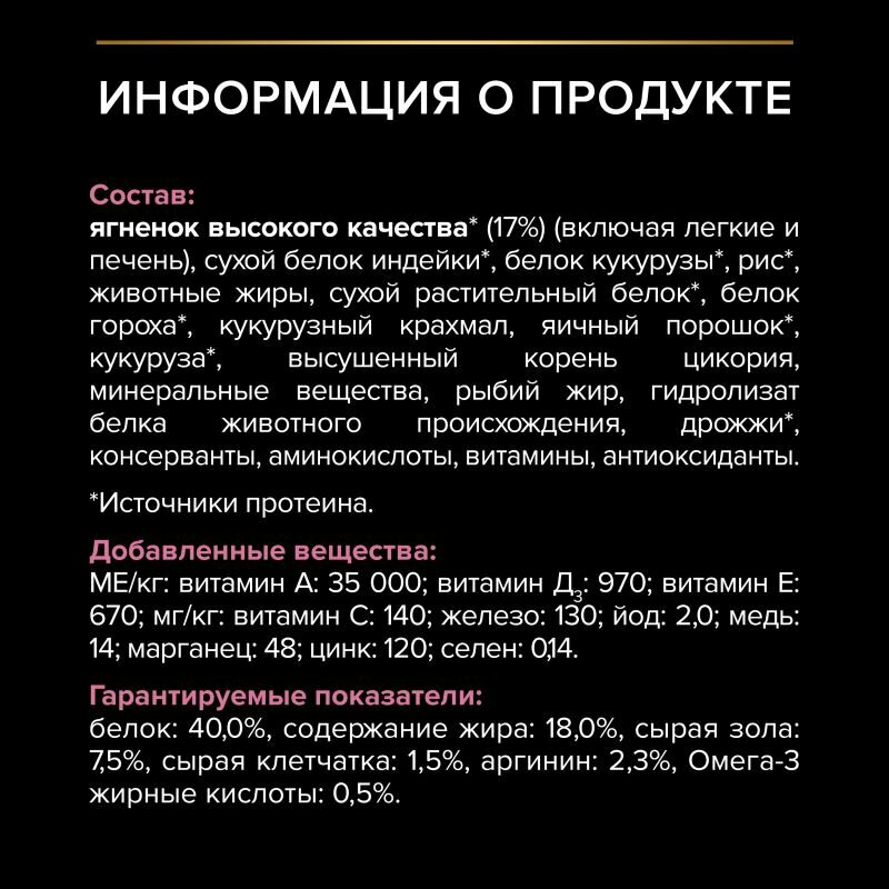 Корм Purina Pro Plan для кошек с чувствительным пищеварением, с ягненком
