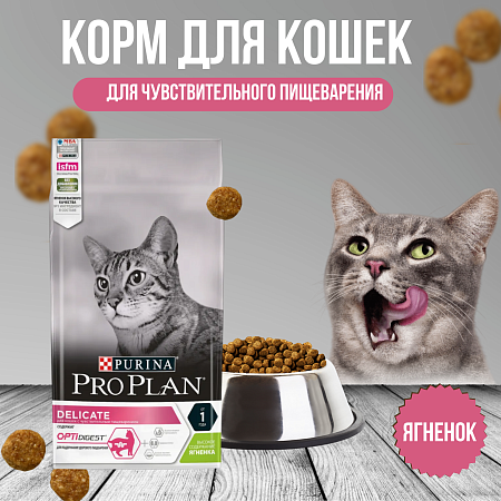 Корм для кошек PRO PLAN Delicate с чувствительным пищеварением, с ягненком сух. 1,5кг