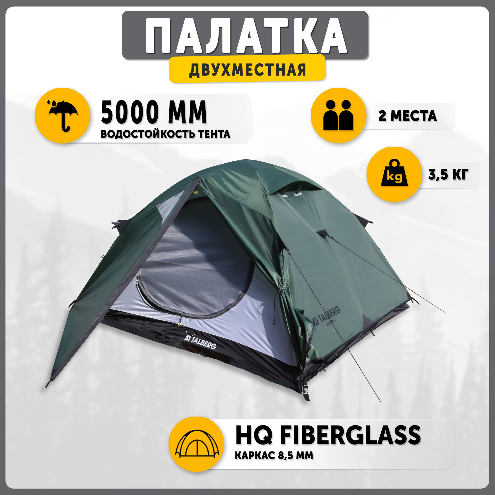 Палатка Talberg Boyard 2 размер 290х220х120 см, тент 5000 мм