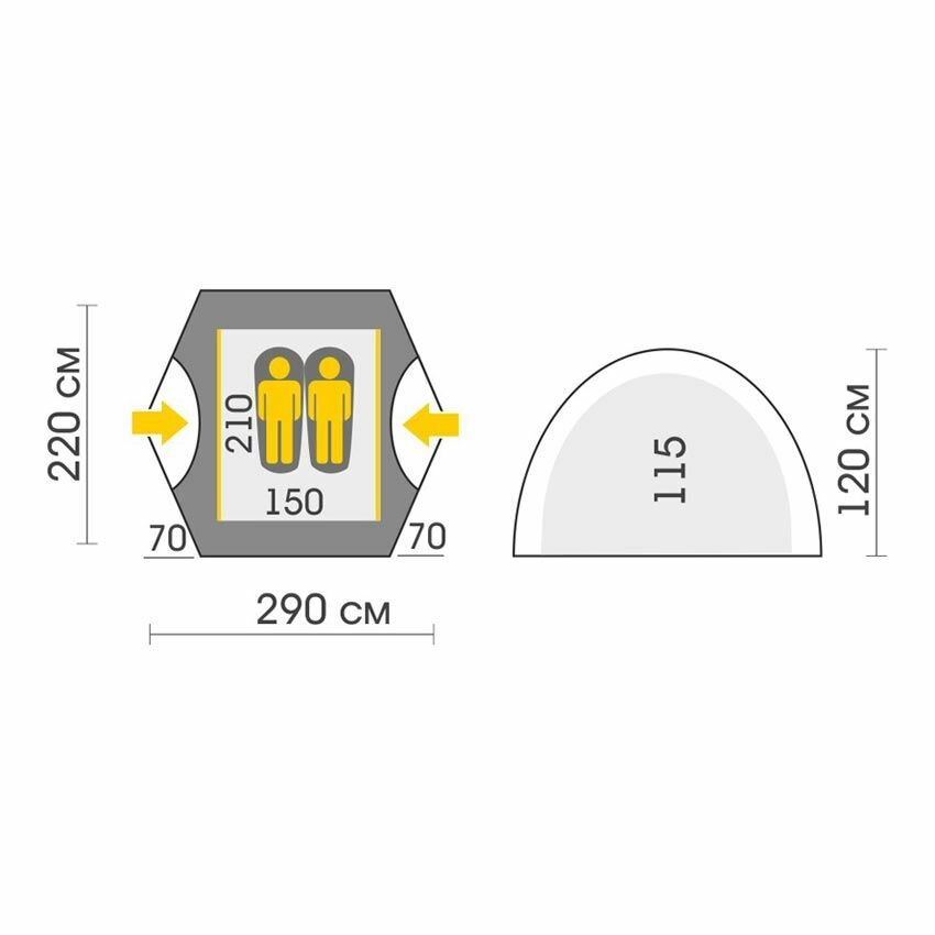 | Ширина внутренней палатки | 210 см |