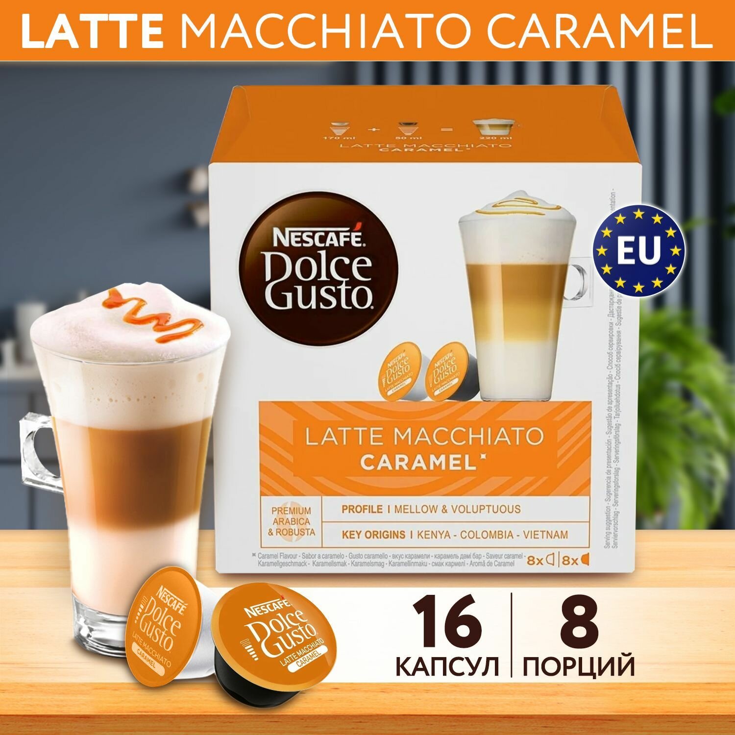 Кофе в капсулах Latte Macchiato Caramel для Nescafe Dolce Gusto, 16 кап. в уп., 1 уп.