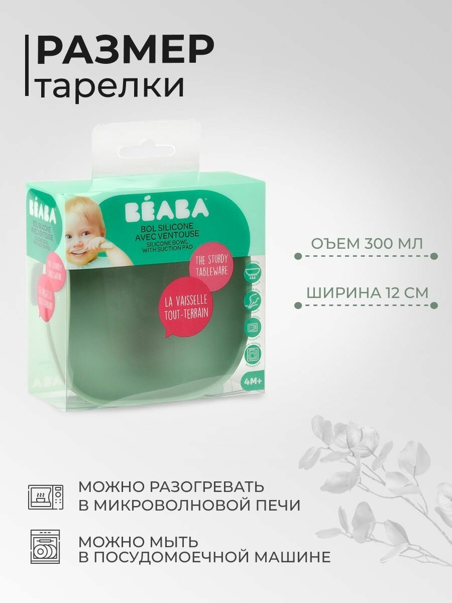 Тарелка на присоске детская Beaba 300 мл., силиконовая тарелка для кормления и прикорма малышей с 4 месяцев