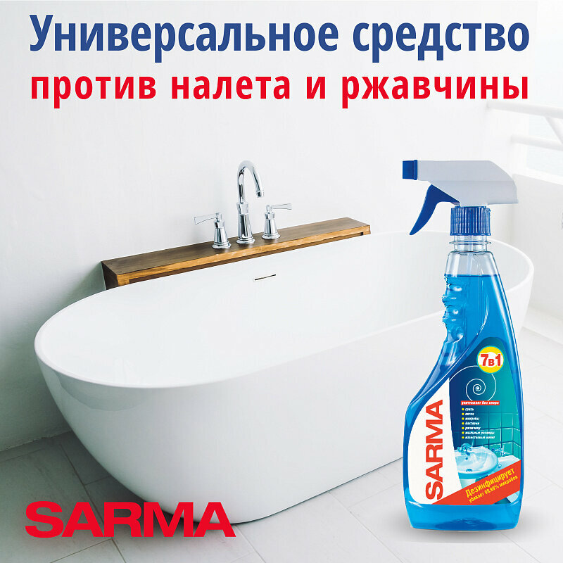 Спрей SARMA для чистки поверхностей ванной 7 в 1 Дезинфицирует удаляет 99,99% микробов 500мл 9080К