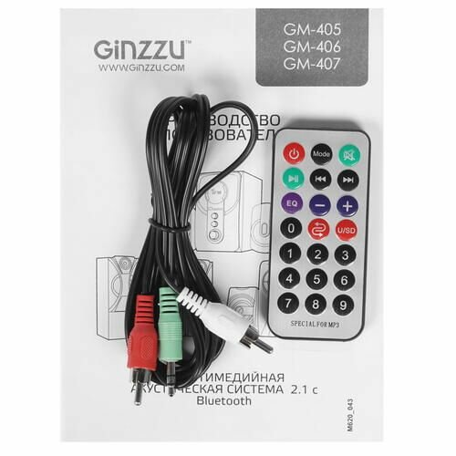 Ginzzu GM-405 2.1 с Bluetooth, выходная мощность 20Вт + 2х10Вт, аудиоплеер USB-flash, SD-card, FM-радио, пульт ДУ - 21 кнопка, стерео вход 2RCA , эквалайзер обыч