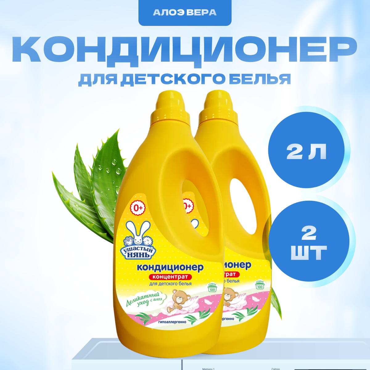 Купить Кондиционер для белья Ушастый нянь детский с алоэ вера 2 шт по 2 л