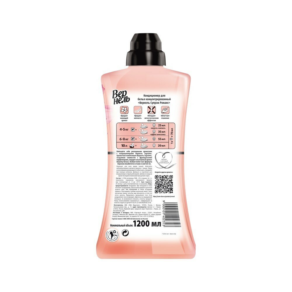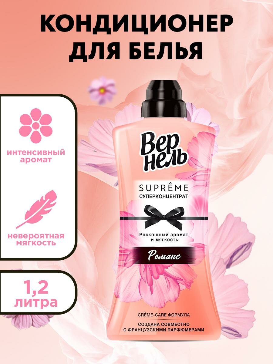 Вернель Концентрированный кондиционер-ополаскиватель для белья Supreme Romance, 1.2 л, 1.2 кг