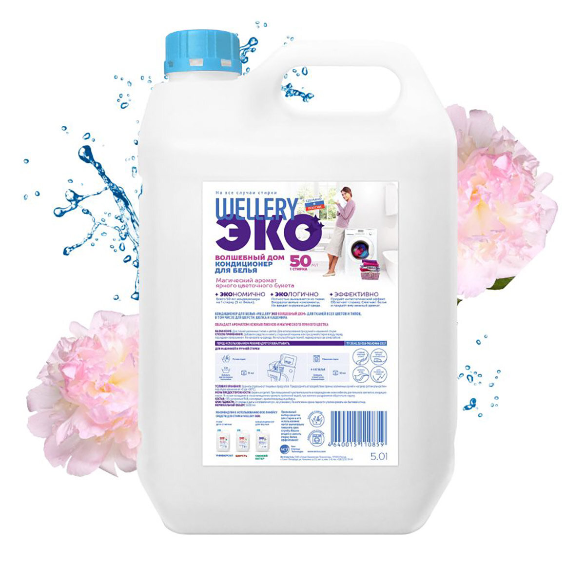 Парфюмированный кондиционер для белья "WELLERY Эко Волшебный дом", пион и лунный цветок, канистра,5л