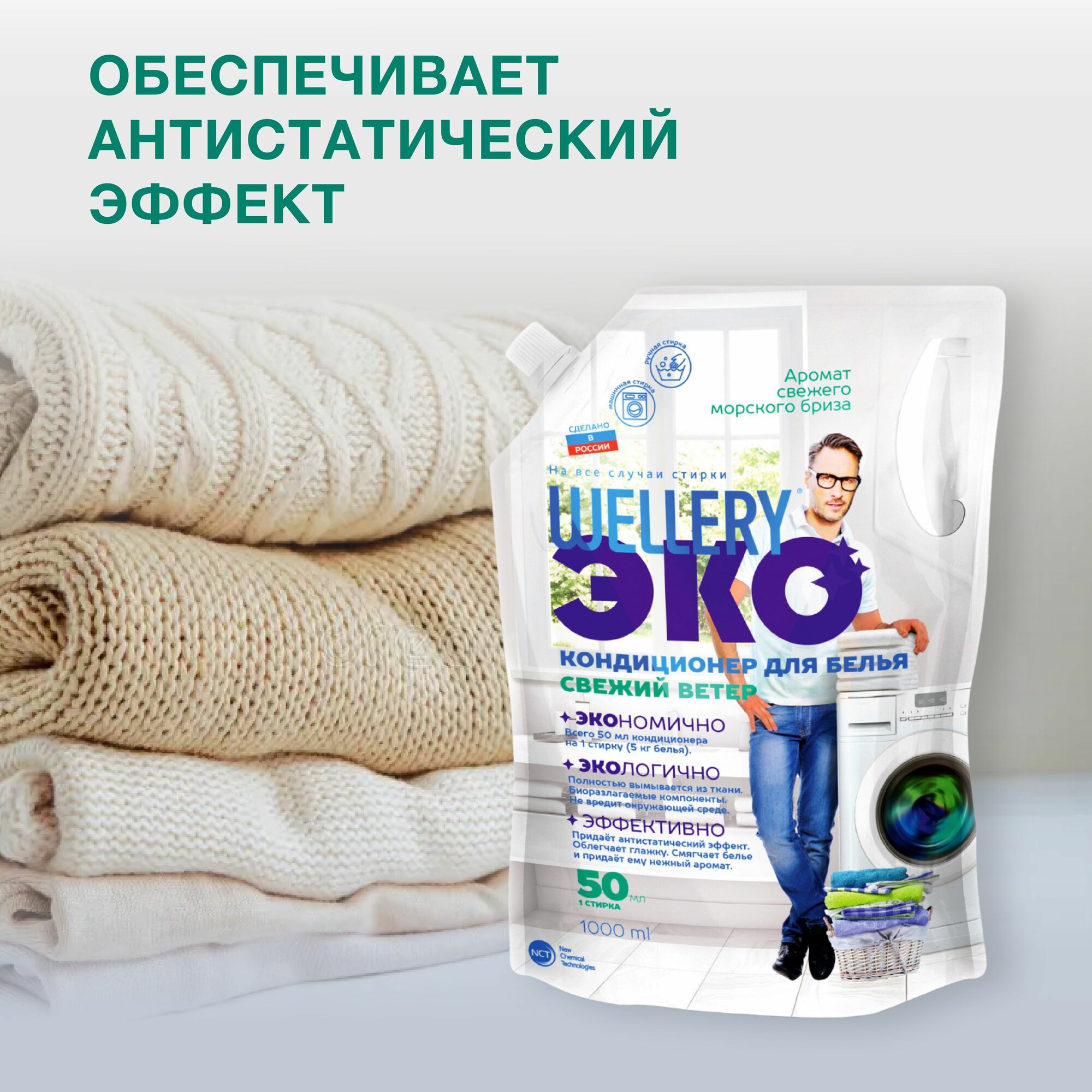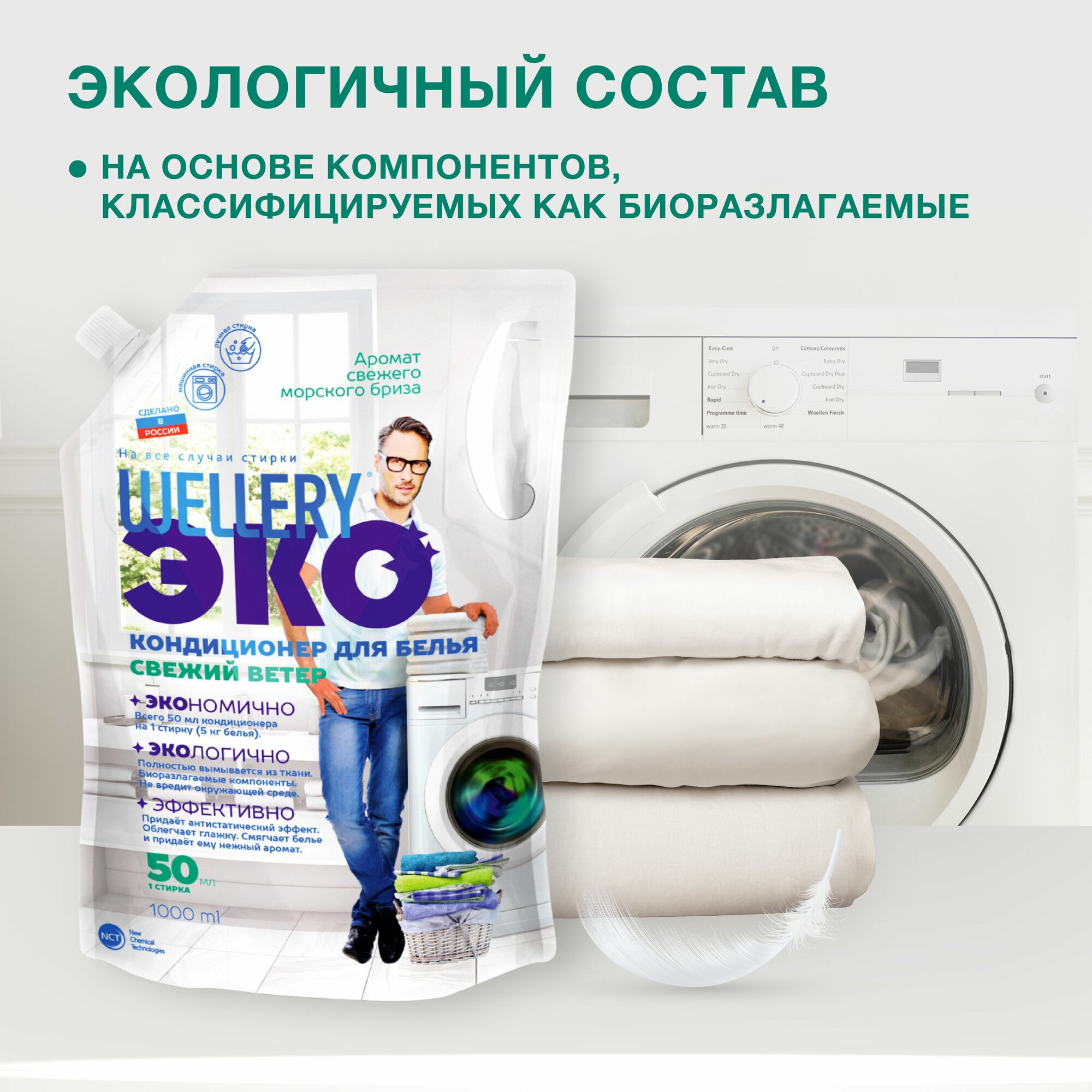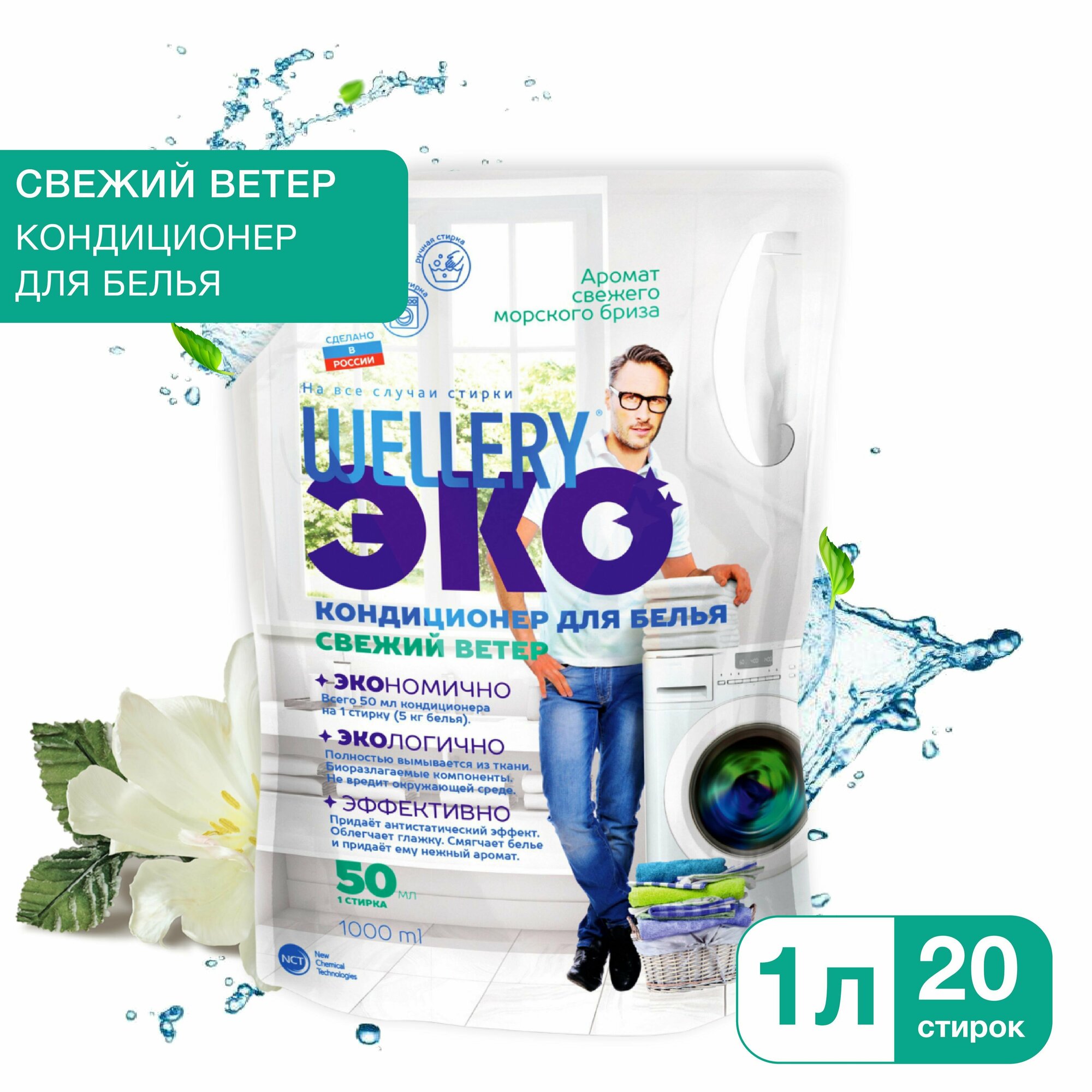 Кондиционер-ополаскиватель для белья Wellery ЭКО Свежий ветер, 1 л