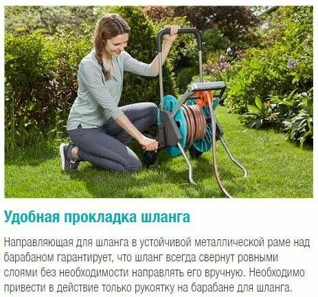 | Плюсы: | Купил катушку в разобранном виде. Собрал за 10 минут. Использовать оказалось чрезвычайно удобно. Устойчиво стоит, не заваливается в стороны при выдёргивании шланга (кто-то писал, что катушка неустойчивая). Шланг нигде не заламывается (писали и такое). Как всегда у Gardena, качество на высочайшем уровне. Шланг размером 1/2" длиной 50 м намотался и даже осталось место на дополнительные 5-10 метров. |