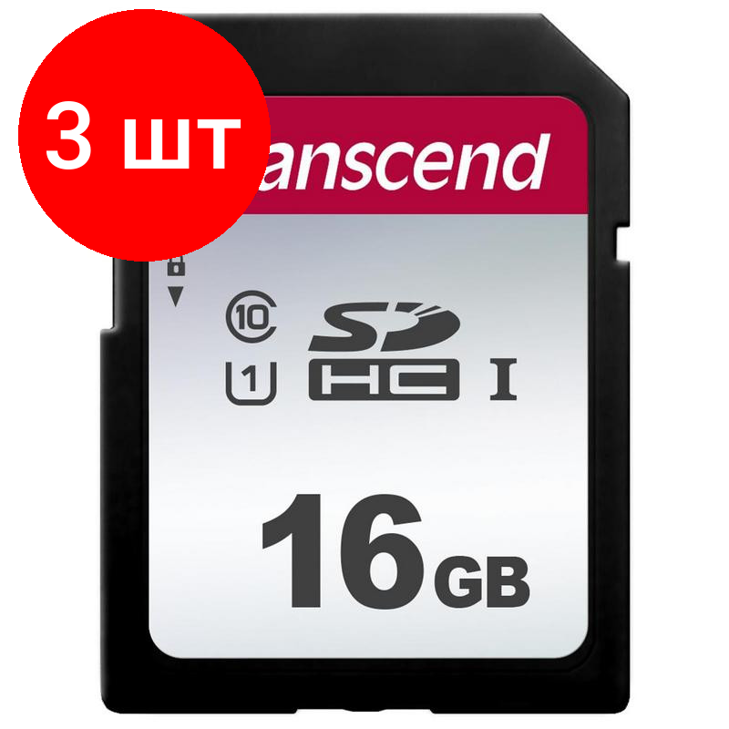 Купить Комплект 3 штук, Карта памяти Transcend 300S SDHC 16Gb UHS-I Cl10, TS16GSDC300S