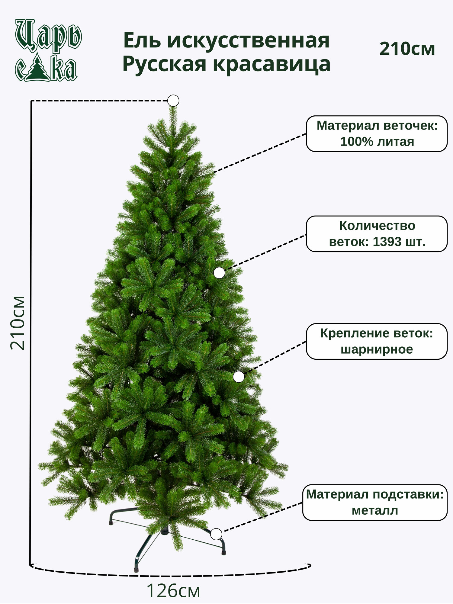 Искусственная елка Русская Красавица Премиум 210 см, литая 100%, царь елка РКП-210