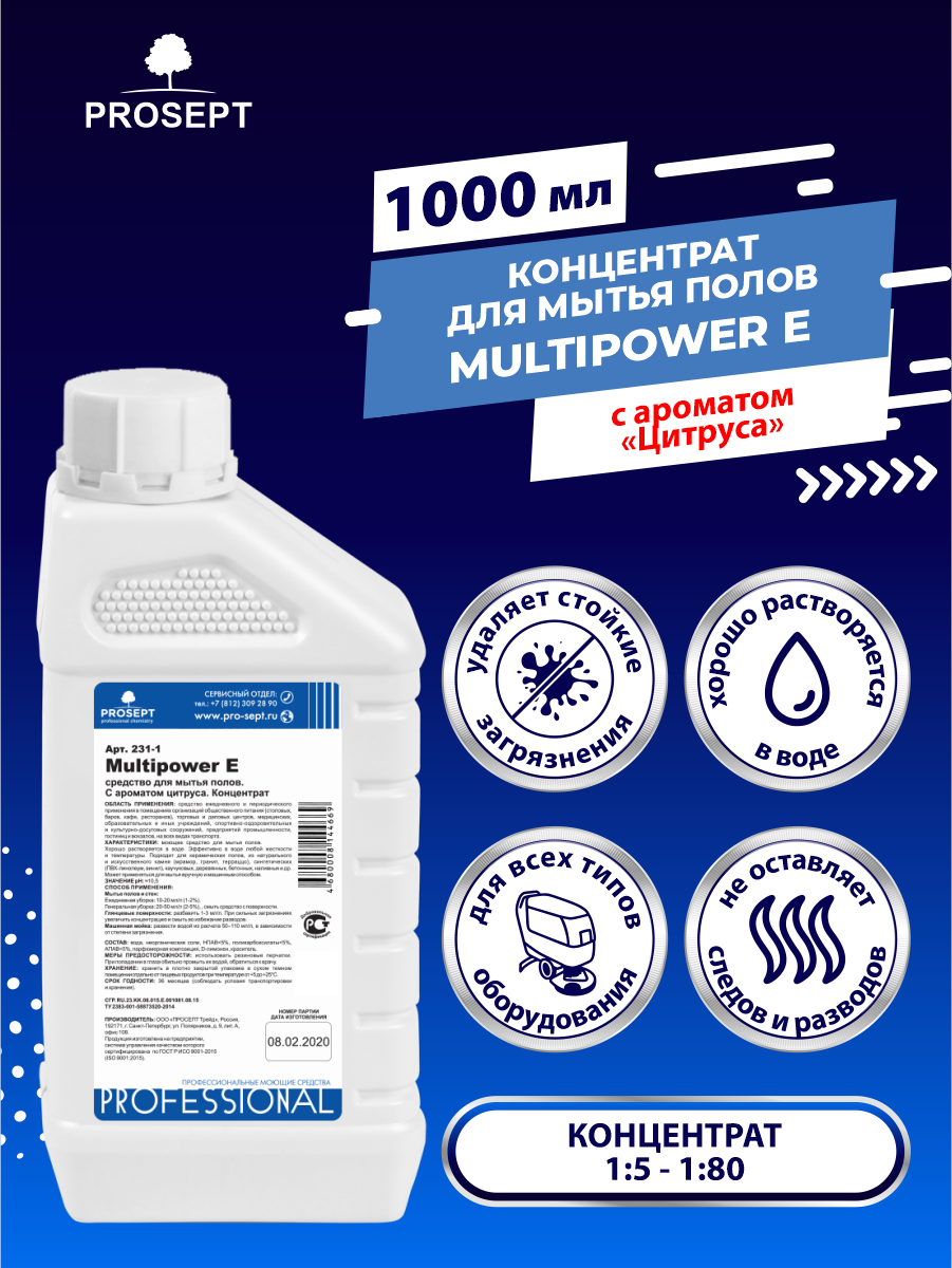 Средство для мытья полов. С ароматом цитруса. ( Multipower E Citrus 1 л. Prosept 231-1 )