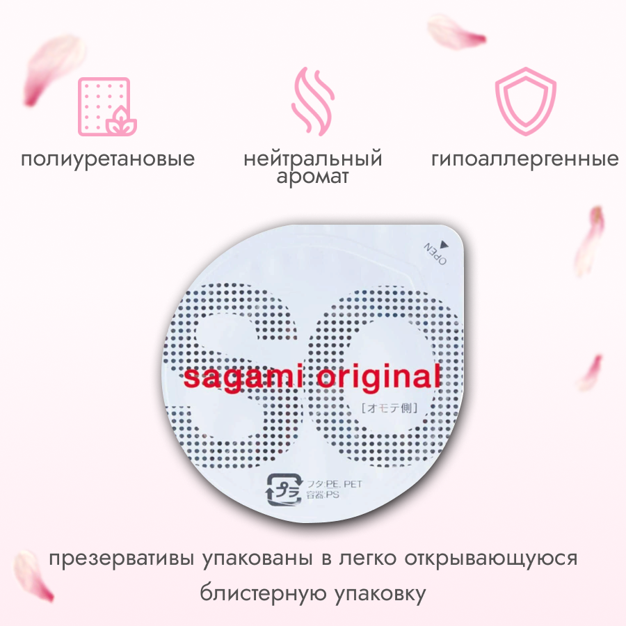 Sagami Original 0.02 - 3 шт. Полиуретановые презервативы 0.02 мм