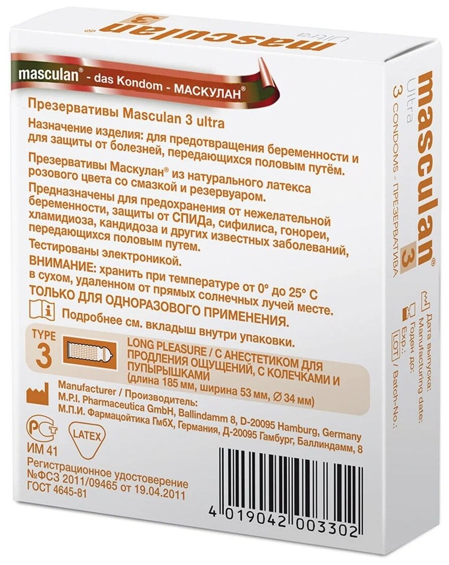 Masculan Презервативы 3 Ultra №3, продлевающие, с колечками, пупырышками и анестетиком