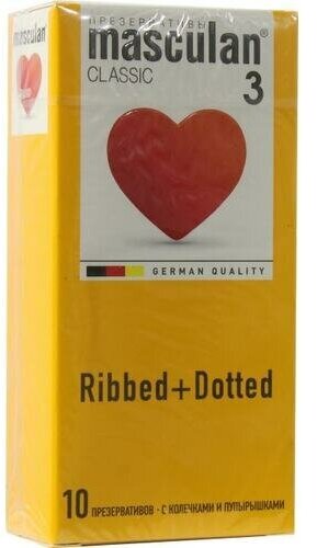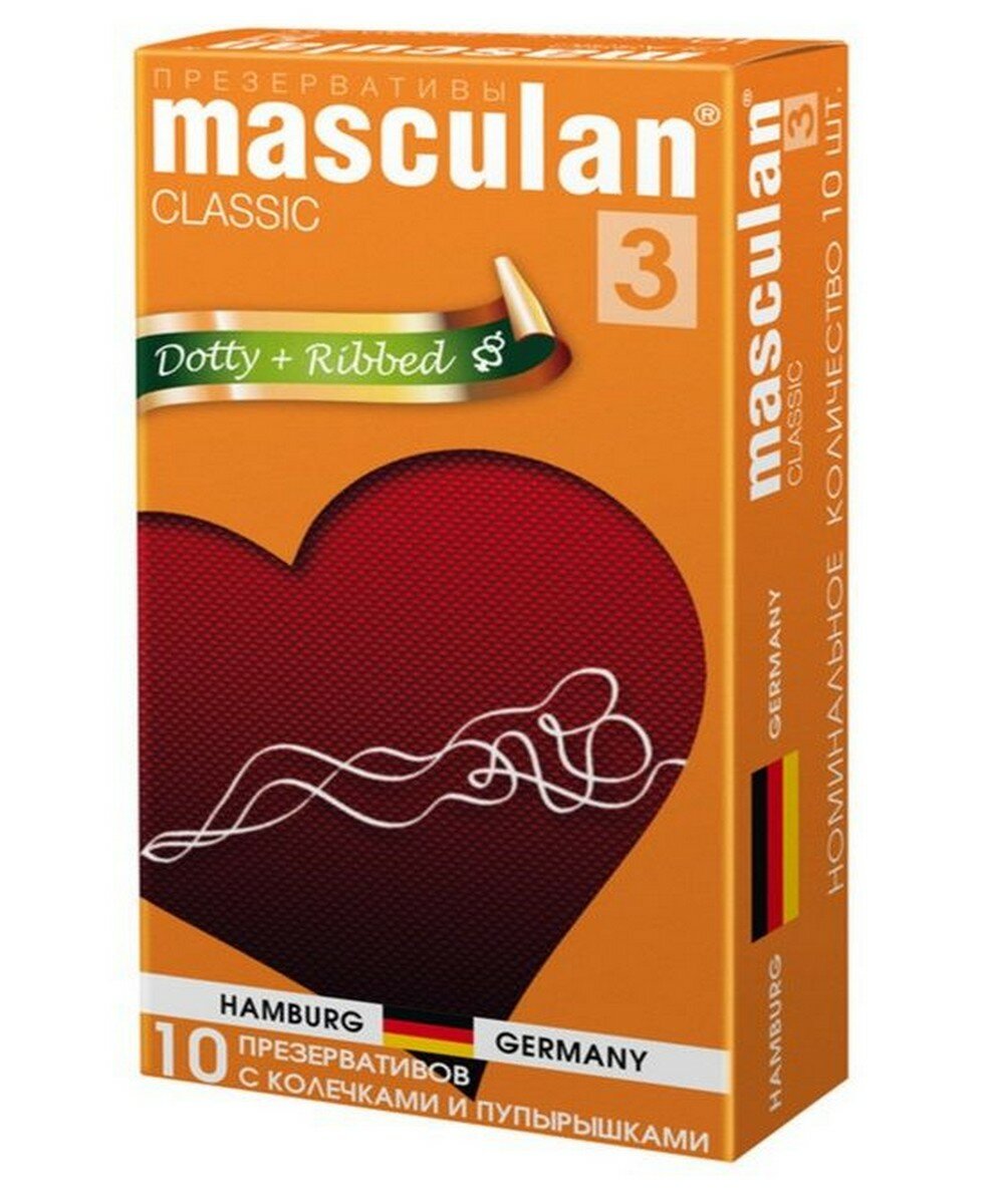 Купить Презервативы 3 classic Ribbed+Dotted №10 С колечками и пупырышками - Masculan [4019042000035]
