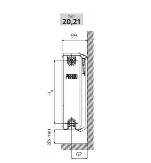 "Панельный стальной радиатор Prado Universal 20*500*700, 916 Вт"