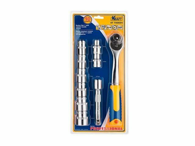 Набор торцевых головок с трещоточной рукояткой (10 шт; 1/2" Dr; 10-24 мм) KRAFT KT 700624
