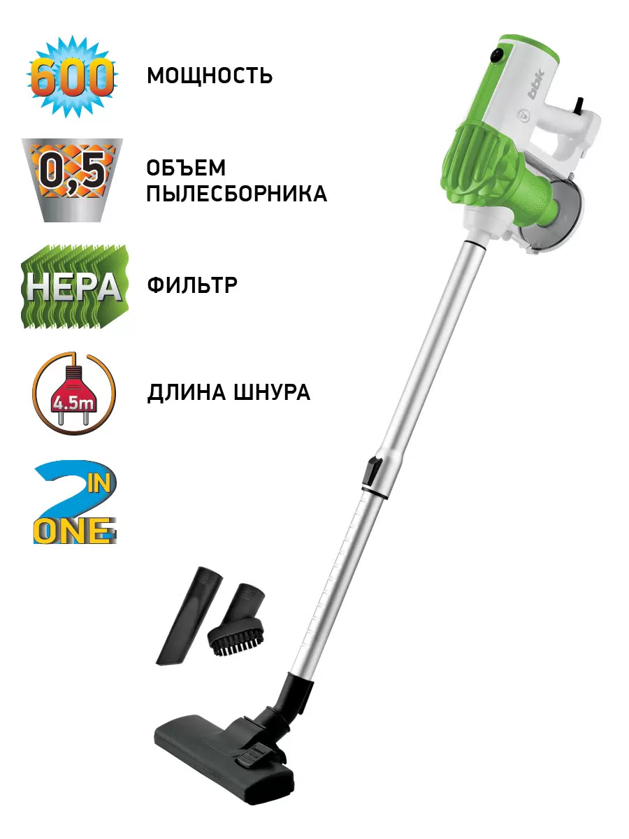 Пылесос BBK BV2512 вертикальный белый/зеленый .