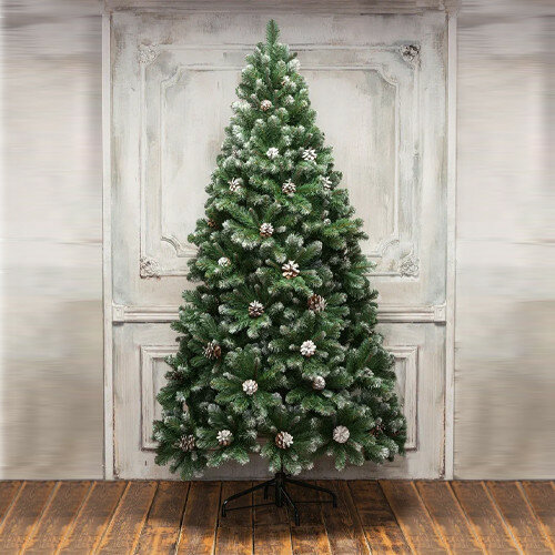 Елка новогодняя 210 см, Снежная королева заснеженная, ель, зеленая, хвоя ПВХ пленка, с шишками, 33210, ЕлкиТорг
