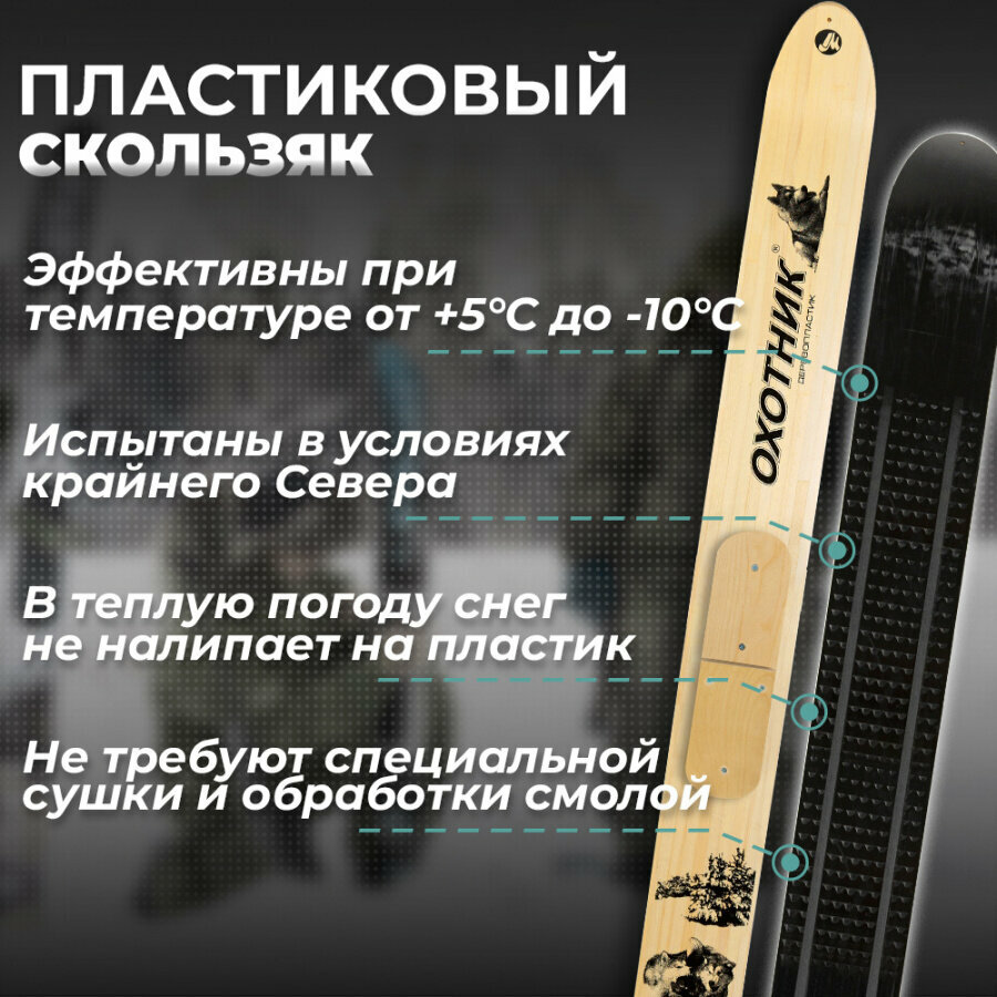 Лыжи охотничьи пластиковые Маяк охотник 175х15 см с деревянными накладками (дерево-пластик)