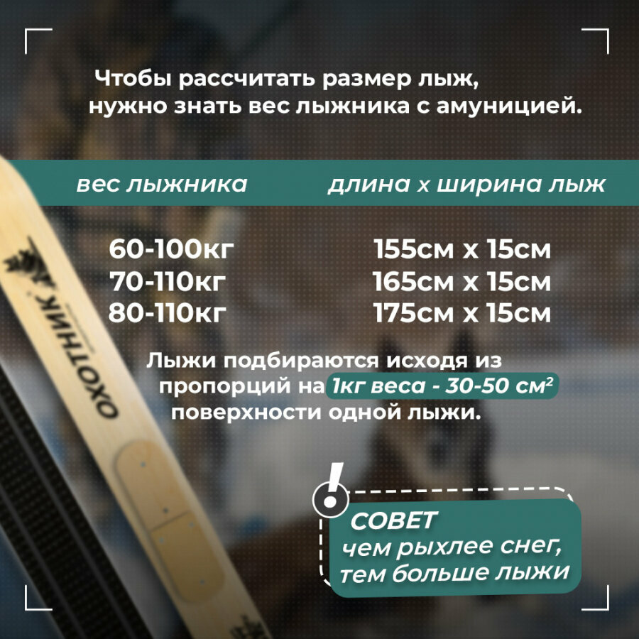 Охотничьи лыжи Маяк охотник 125х15 см, дерево-пластик + накладки, дерево