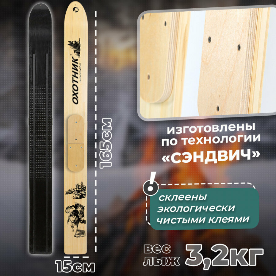 Лыжи охотничьи пластиковые Маяк Охотник 165 х 15 см с деревянными накладками (дерево-пластик)