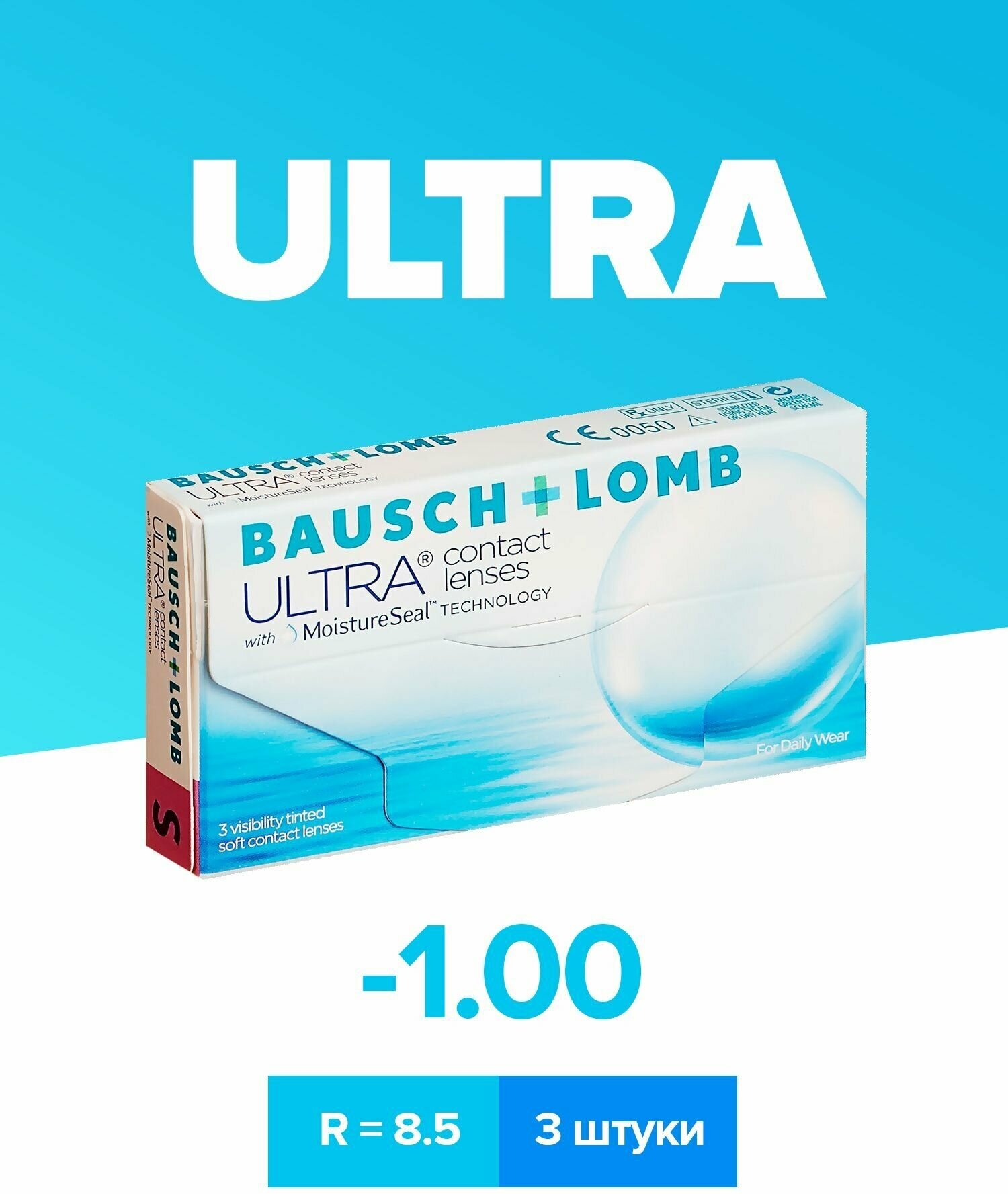 Ежемесячные контактные линзы Bausch&Lomb ULTRA 3 pk (BC 8.5; D -0.50)