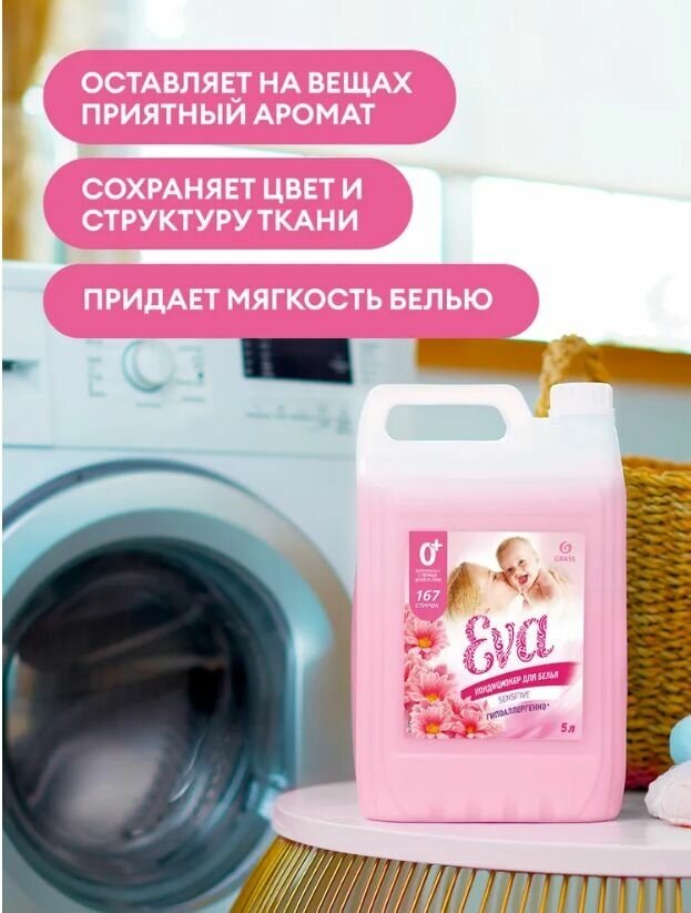 Кондиционер ополаскиватель Grass для детского белья Eva Baby, гипоаллергенный 5л