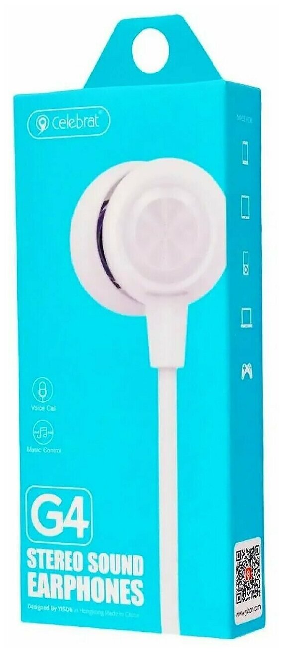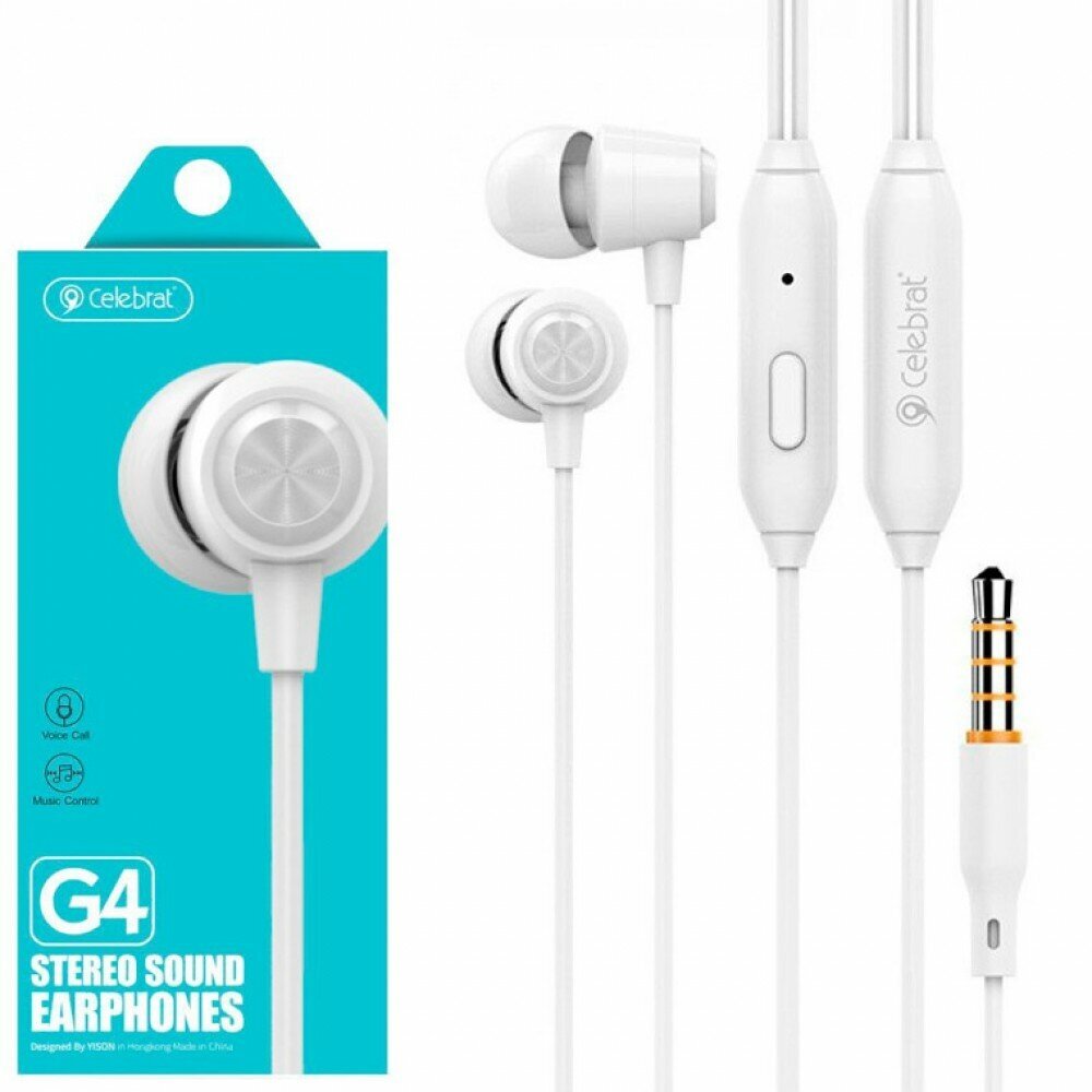 Наушники Celebrat G4, mini jack 3.5 mm, white