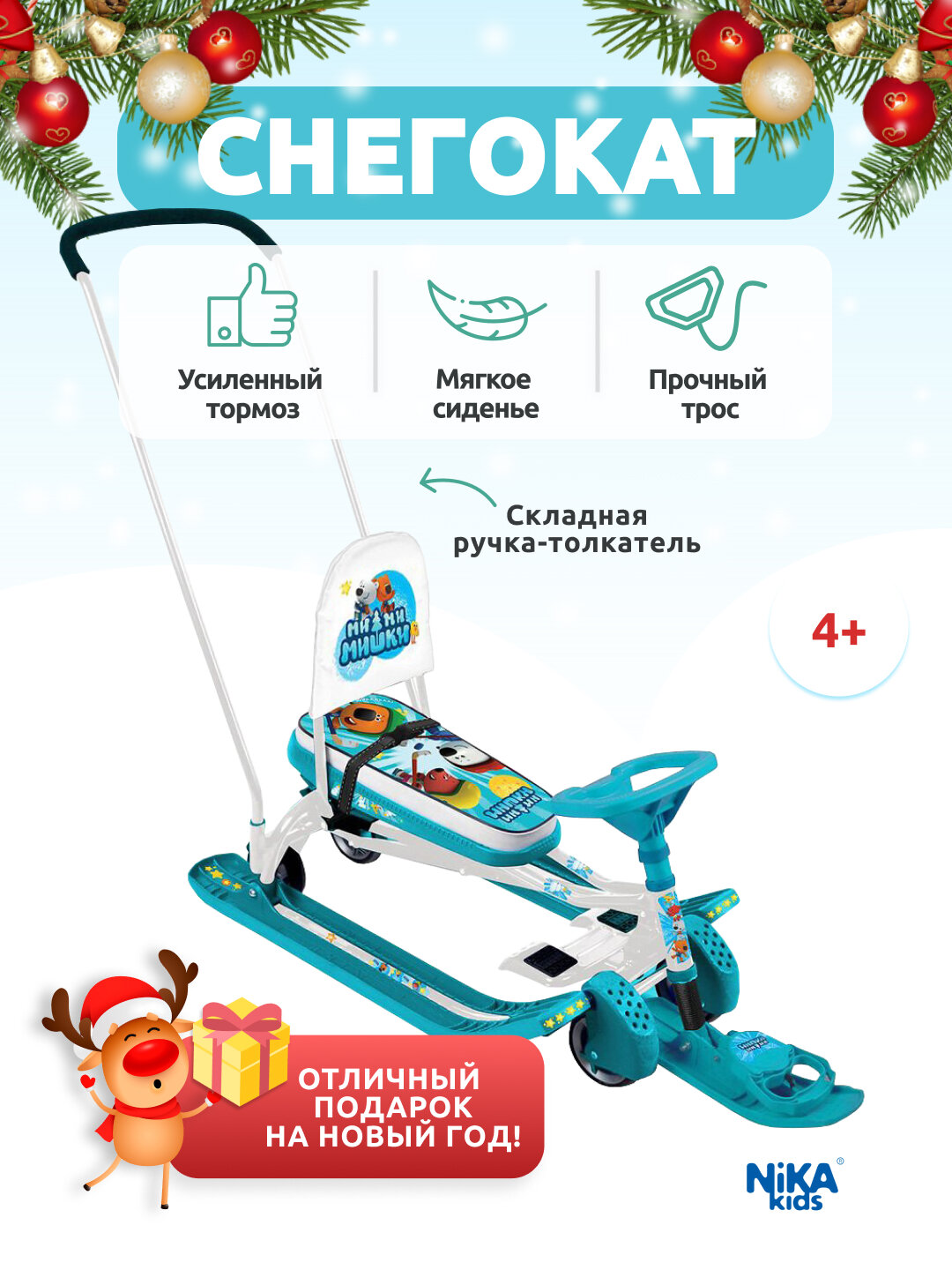Снегокат для детей с выдвижными колёсами, родительской ручкой, Nika, ТС6-М/К