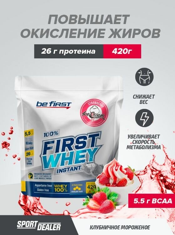 Купить Be First Whey instant 420 гр. (Клубничное мороженое)